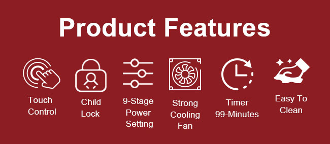 | Control | Touch Keys, 8 kyes,1xthree- digit segment display,4 red LED |
