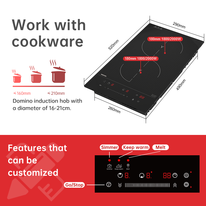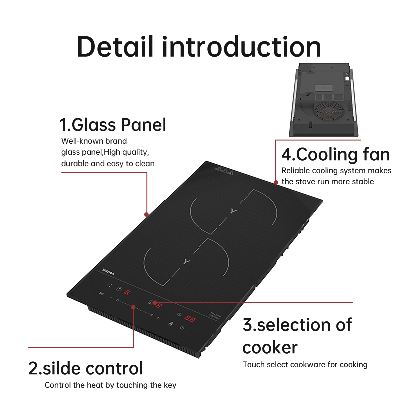 | Function | Two hobs/ Touch Control/ 9 stage /Timer/,Pansor/,Automatic safety switch off/,Residucl heat indicators/,Child Lock/,Booster Function |