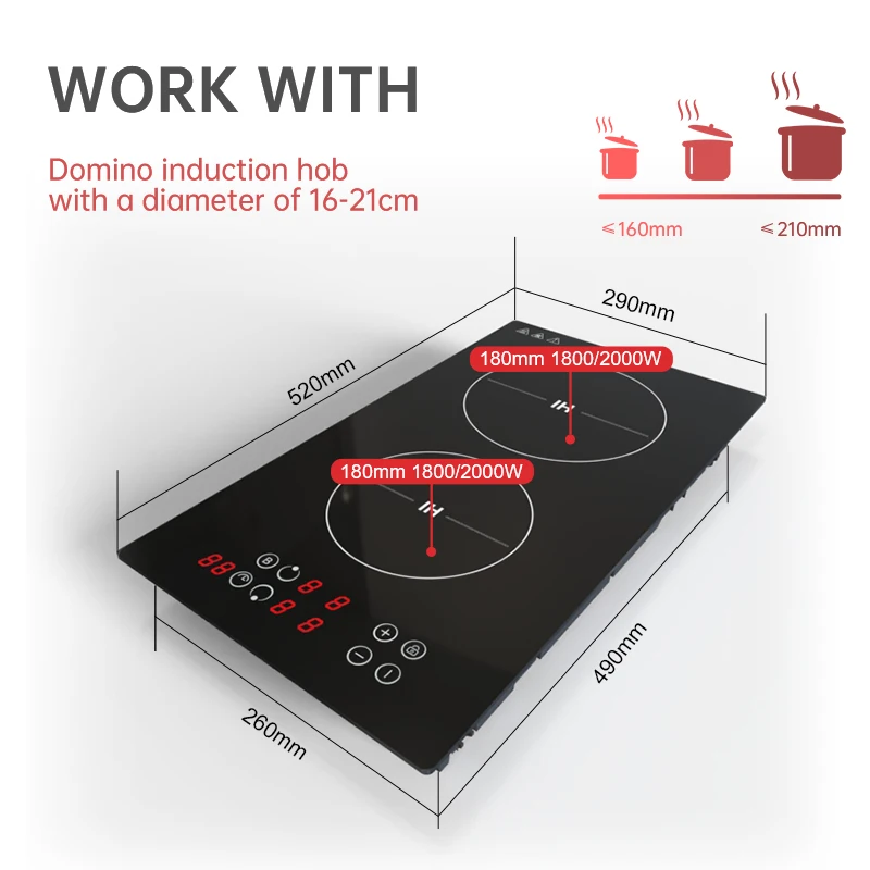 | Control | Touch keys, 9 keys, 5 red LED, 2*one-digit segment display and 1*two-digit segment display |