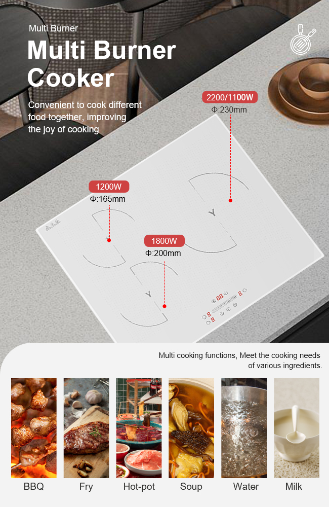 7000W Best Quality Low Price Durable Built-In Electric Induction Cooktop 3 Burner Sensor Touch Screen White Color